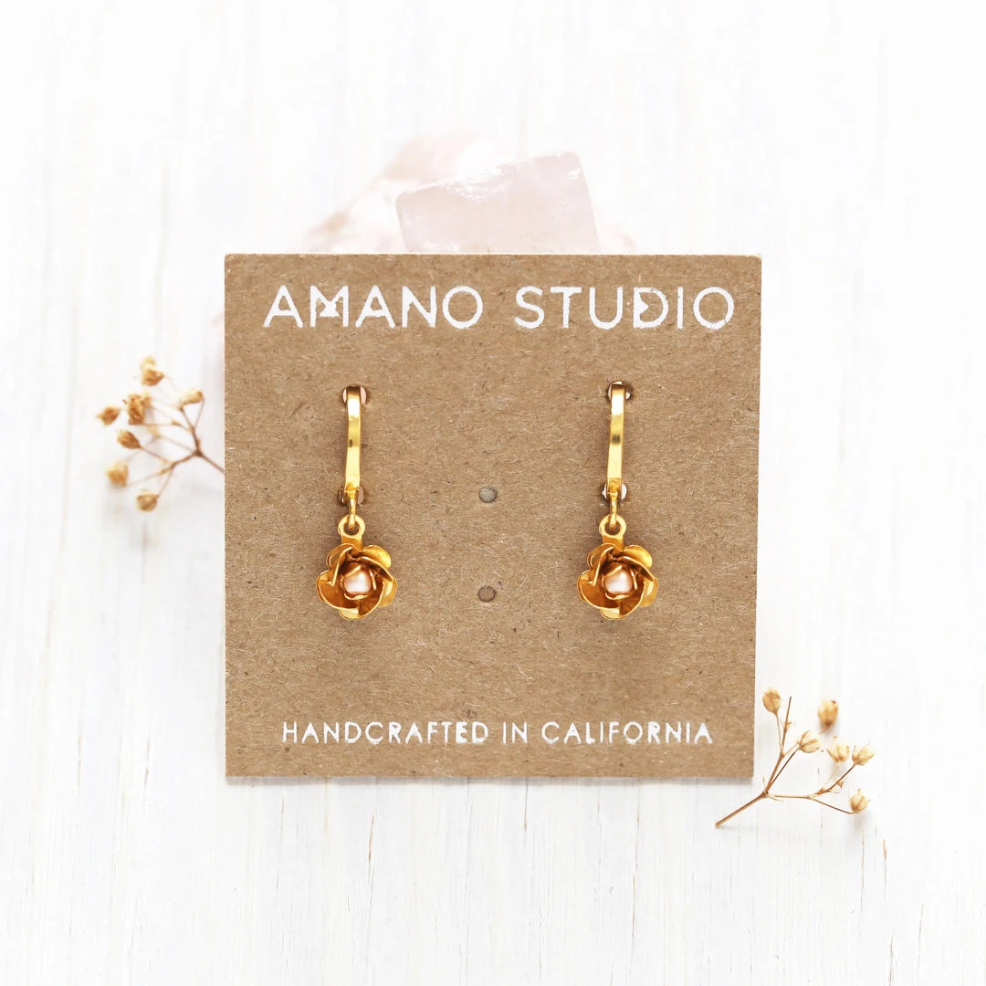 These roses are a style that was ubiquitous in the 80s and we are reproducing them with the same molds that created the originals! So yes they are newly minted but they are genuine vintage design. Made of brass with a heavy (7-10 mil) 24k gold plate with a glass “pearl”.
