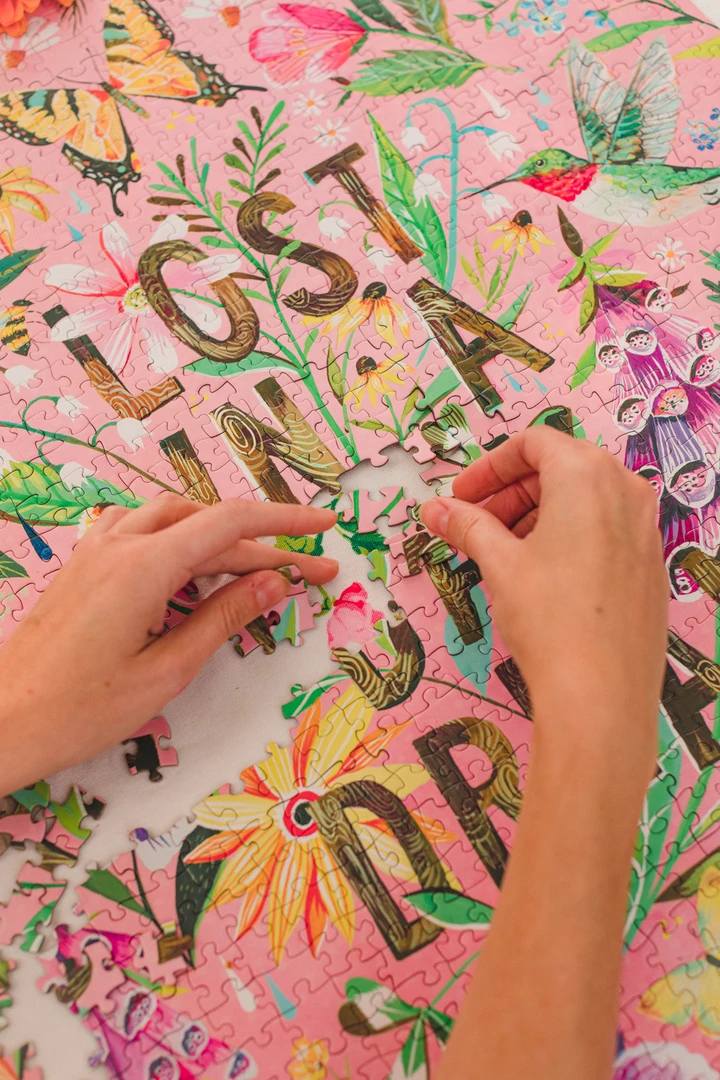 Puzzle your way through a lush landscape filled with colorful wildflowers and fluttering butterflies. Katie Daisy’s charming watercolor and acrylic paintings capture the beauty of a life lived in harmony with nature. Her rural upbringing ― drenched with lilacs, sun, and the songs of goldfinches ― has inspired her promise: “I will forever weave the magic of the prairie into everything I do.”