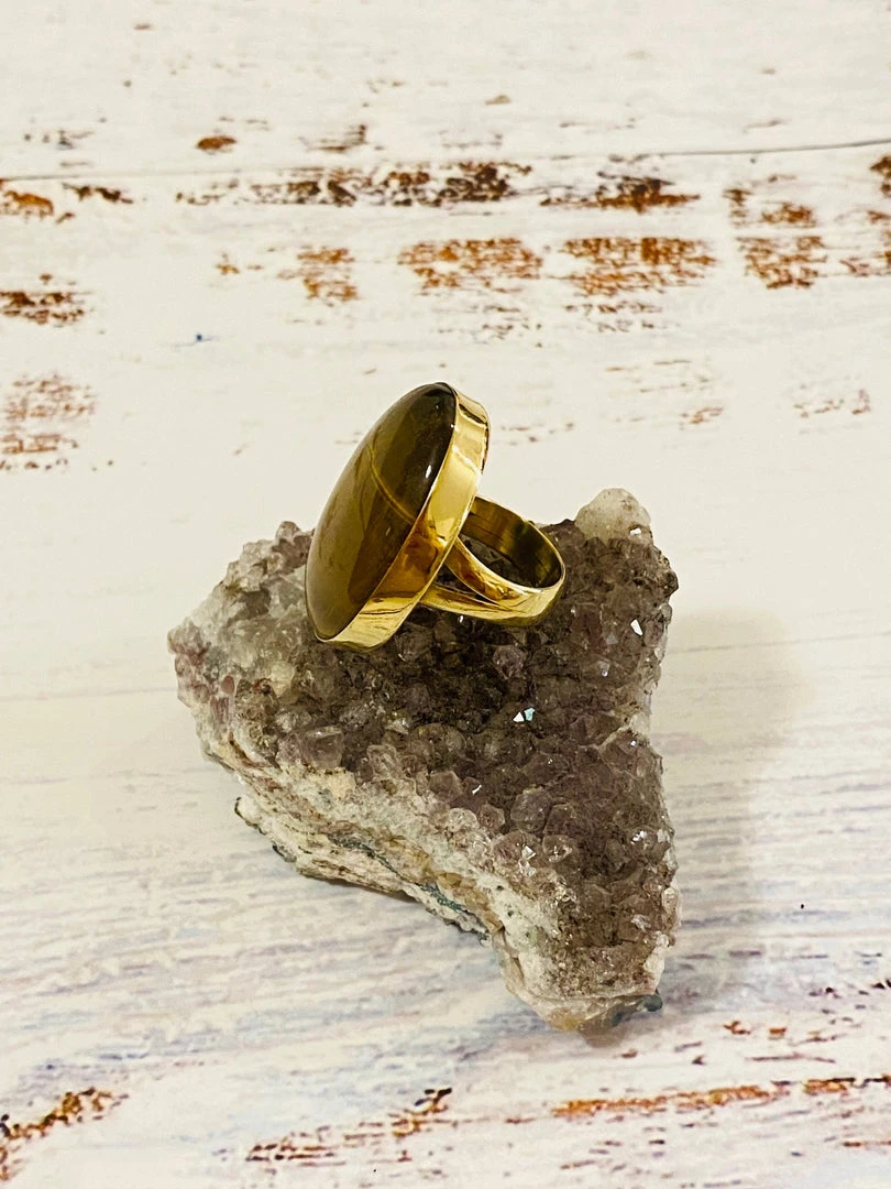 This brass ring is a mix of entirely handmade pieces and cast designs, with all details being hand carved. Made by skilled metal smiths in the Rajasthan region of Northern India. The brass used is a combination of zinc and copper and is nickel-free.