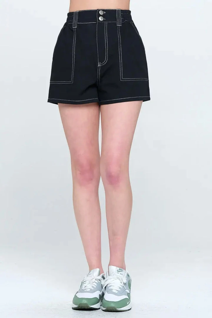 Contrast stitch shorts in Black