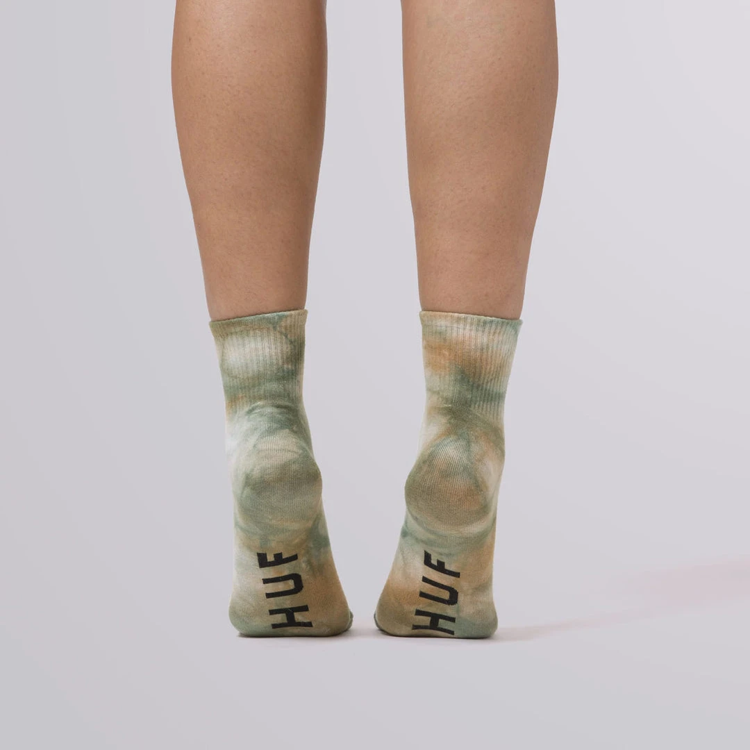 WOMEN’S FINER KNIT TIE DYE 1/4 SOCK FEATURING HUF PLANTLIFE™ AND HUF LOGO AT FOOT BED