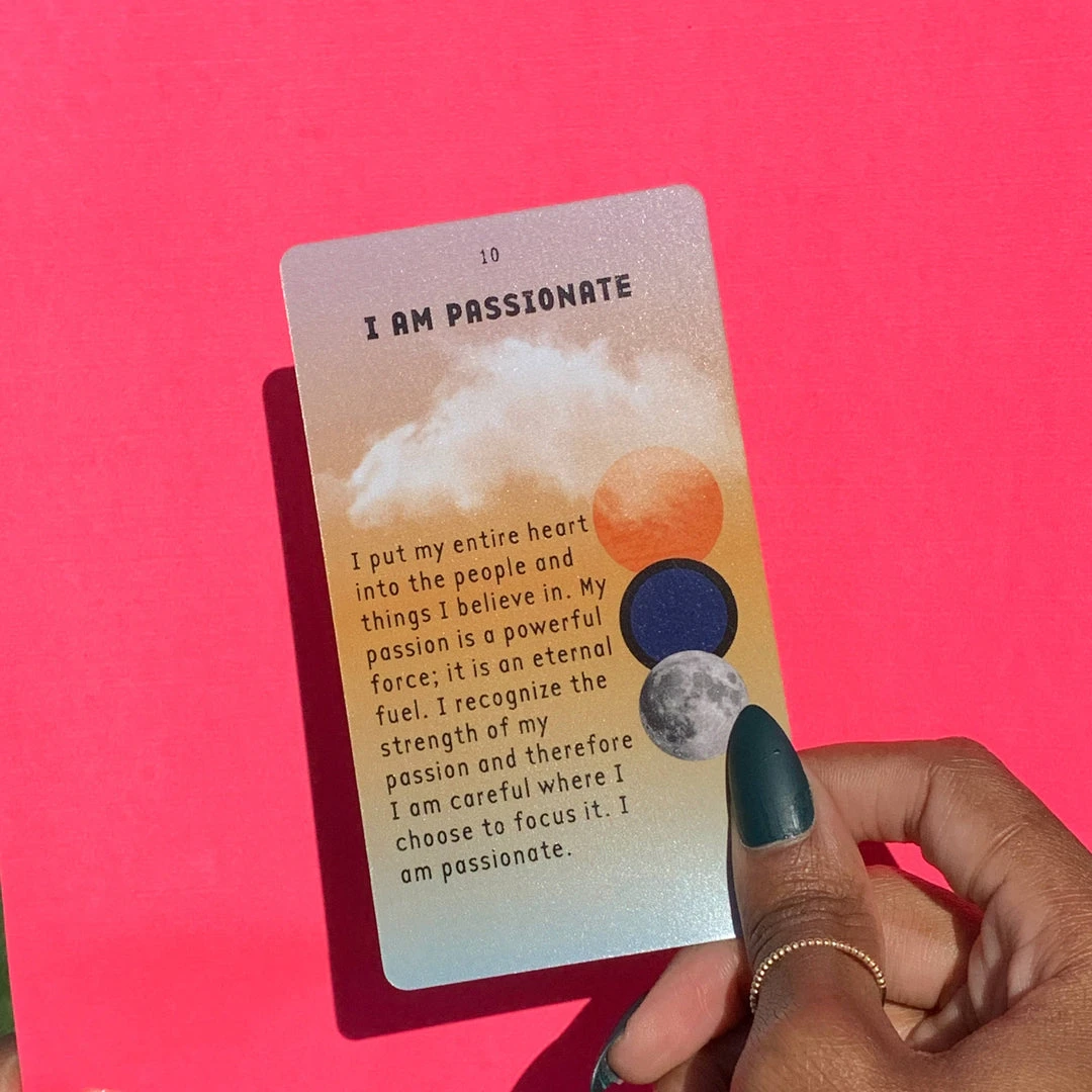 “i am” is the most powerful phrase you can speak because what follows “i am” defines who you are in the moment. Strive every day to reaffirm your awesomeness. I am everything™ affirmation cards are a tool to remind you of all of your amazing qualities. You can shuffle the deck and draw one card and read it aloud to yourself every morning to start your day. Or, you can use them as needed by shuffling the deck and pulling a card in the moment.