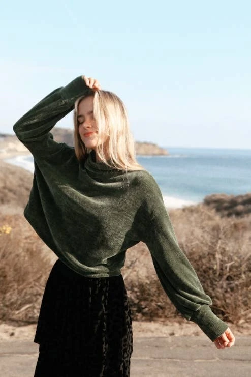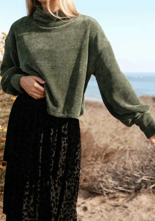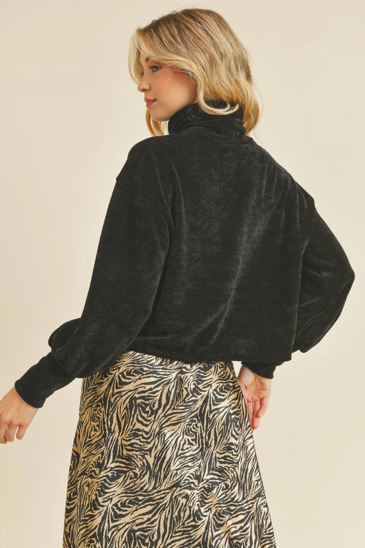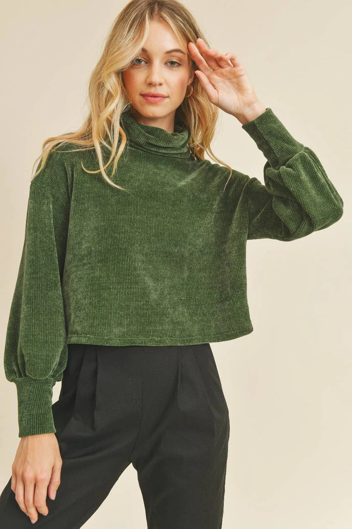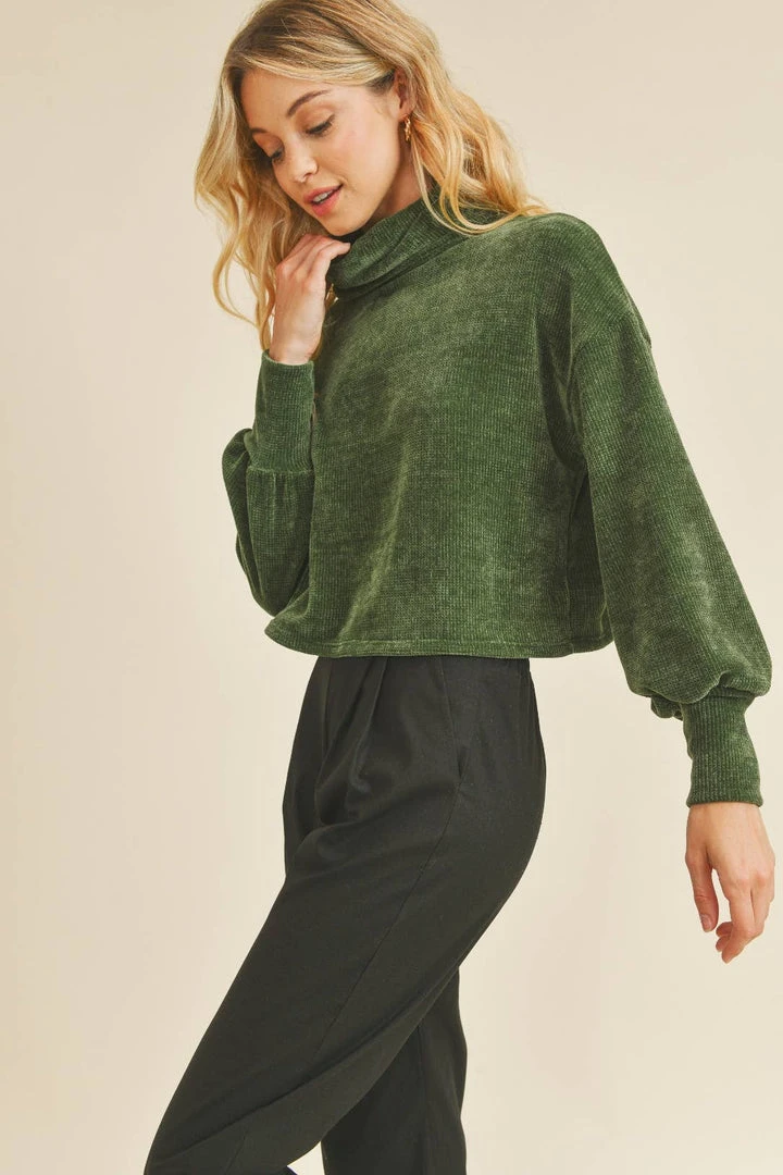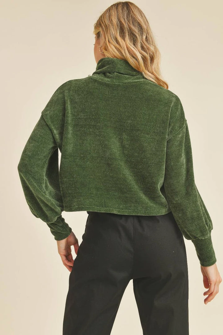 Chenille  cropped turtleneck sweater. Soft to the touch with long sleeves.