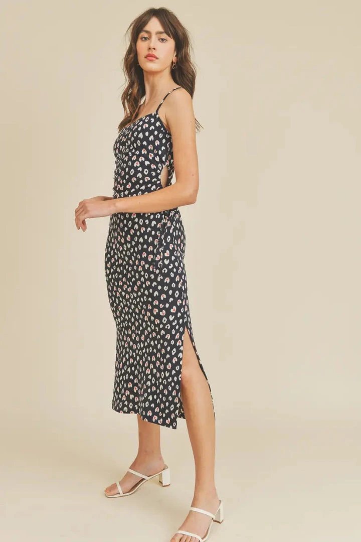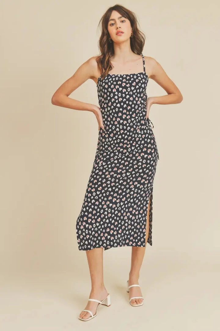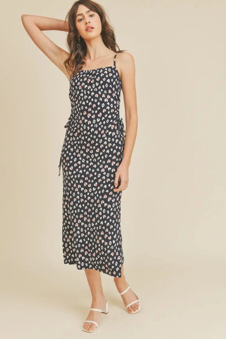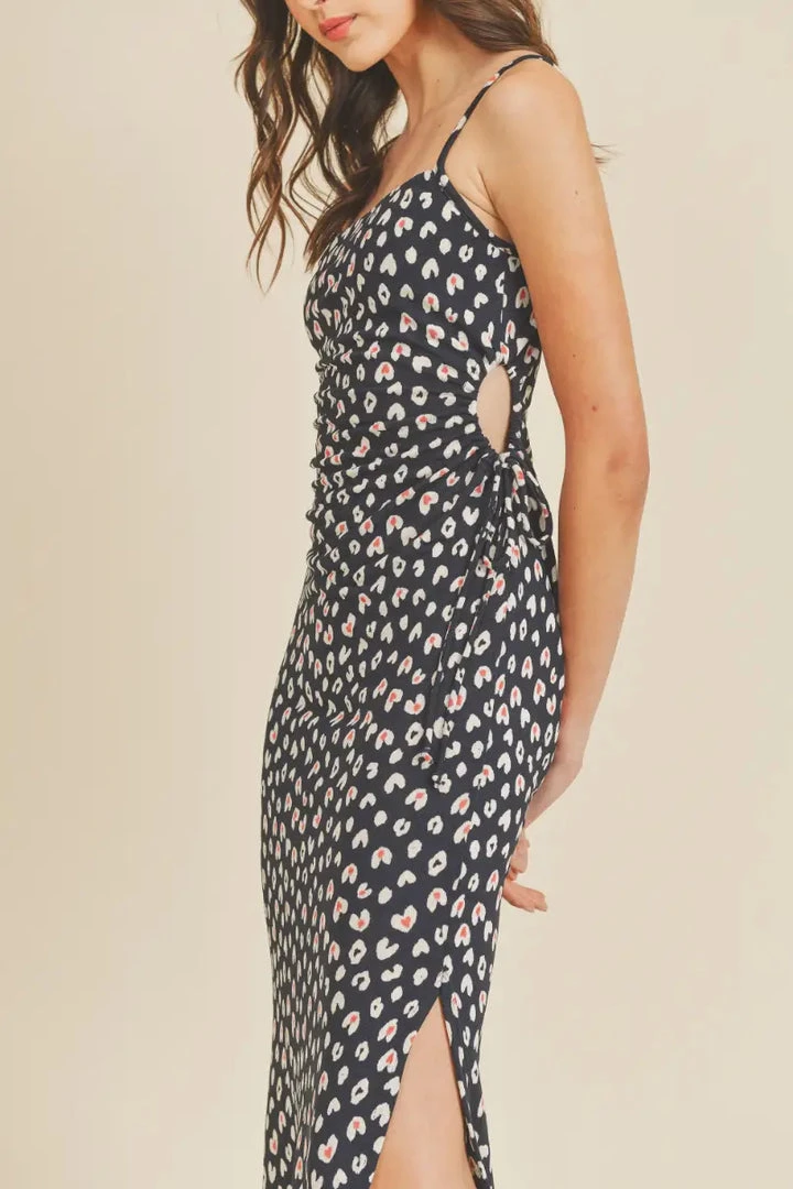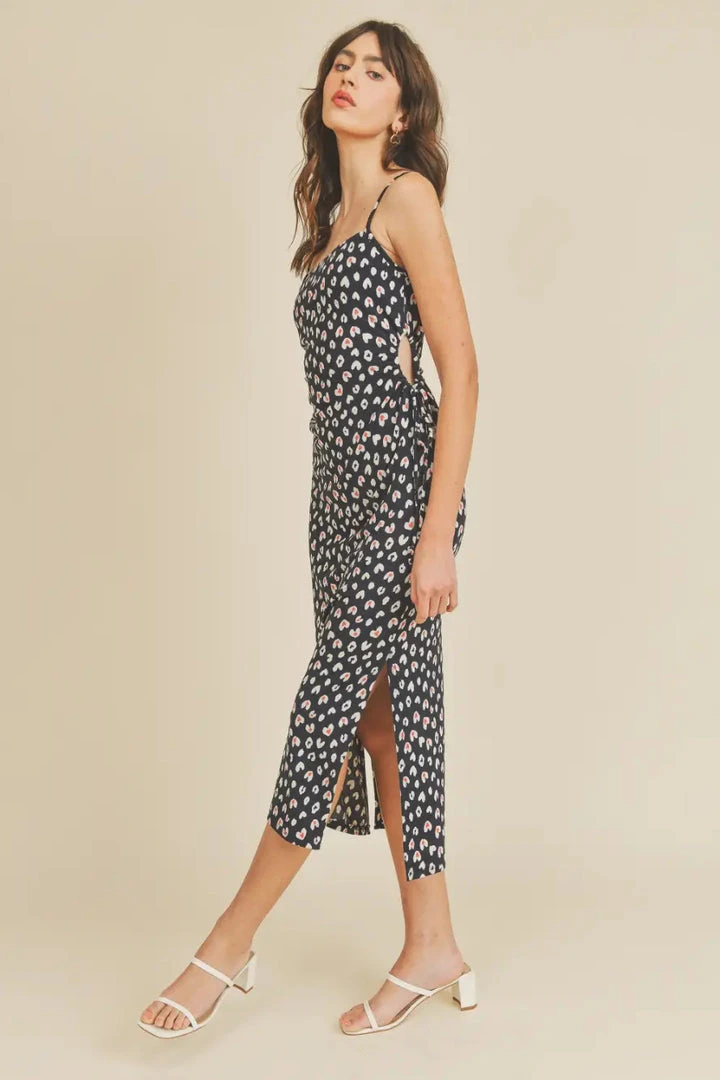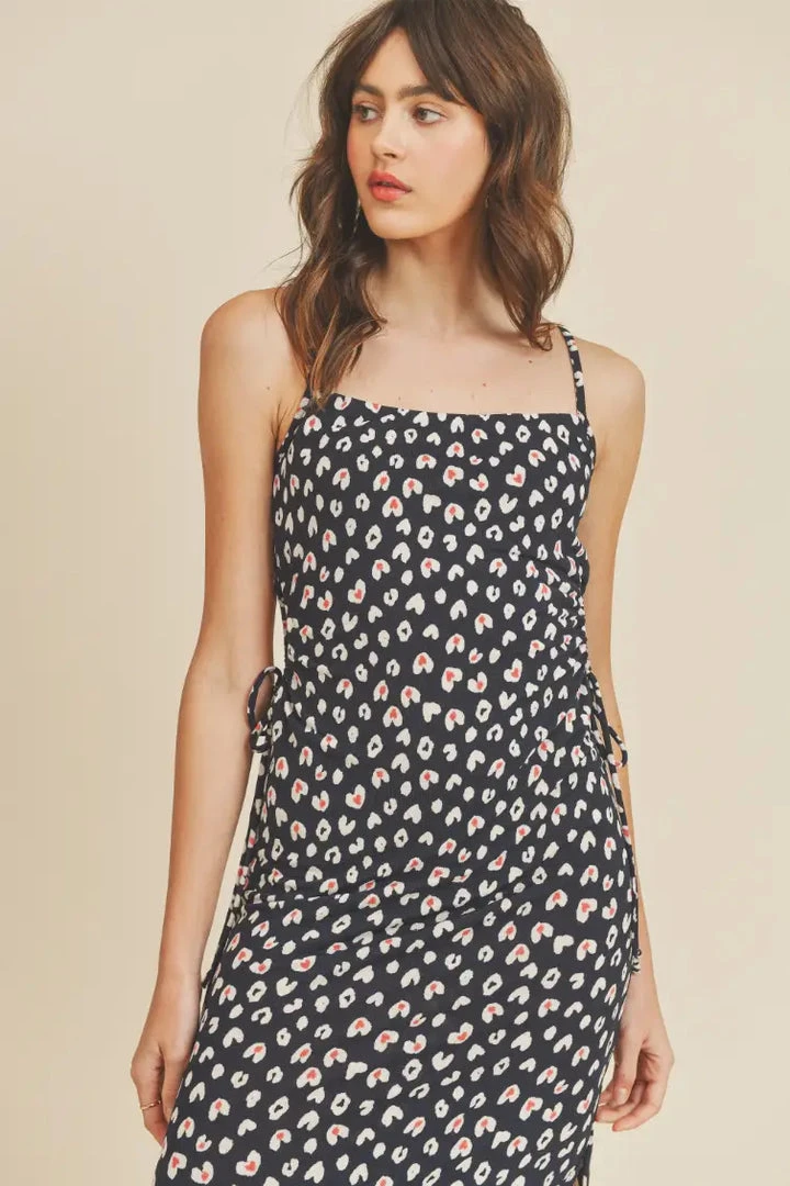 Tulip heart print slip dress. Stretchy with side adjustable holes, side slits and spaghetti straps. 90’s fit.