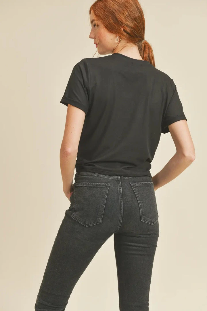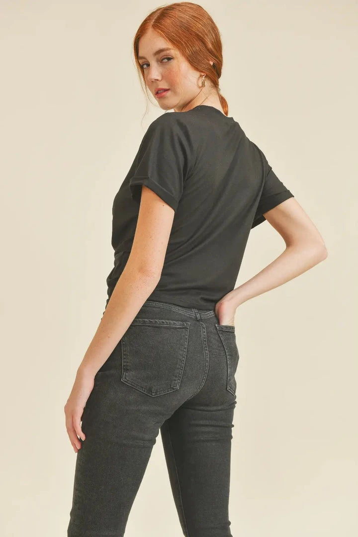 – If its worn with high waisted jeans, it doesn’t show the belly button