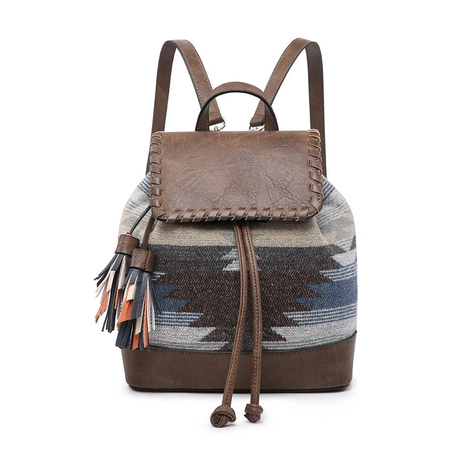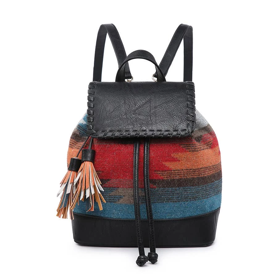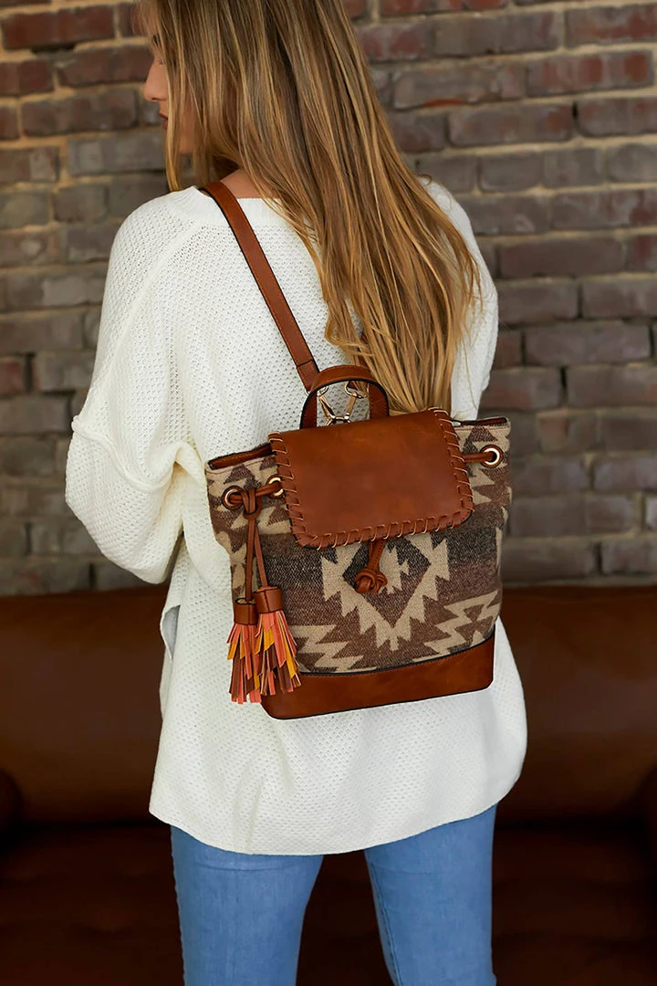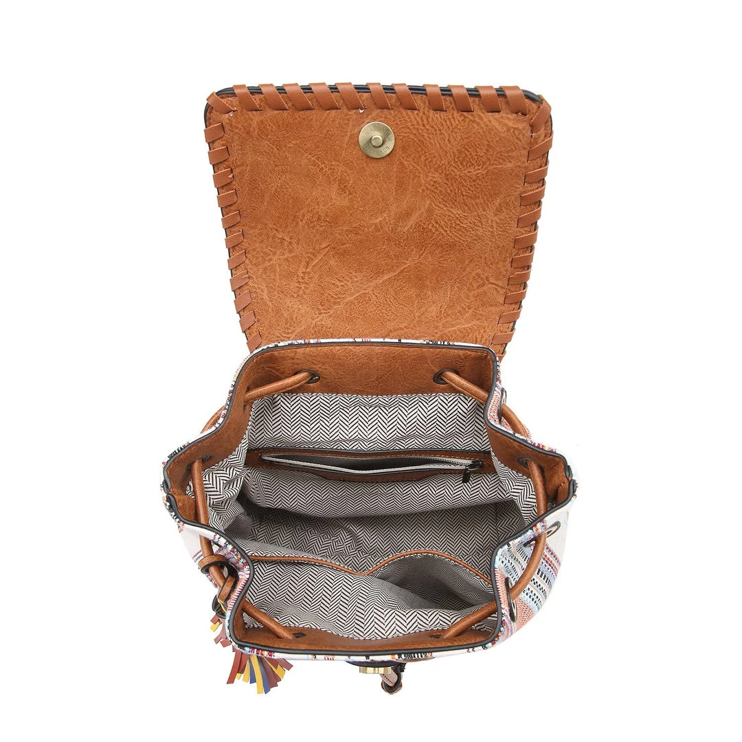 Kourtney Geometric Print Two-Tone Backpack w/ Multi-Color Tassels