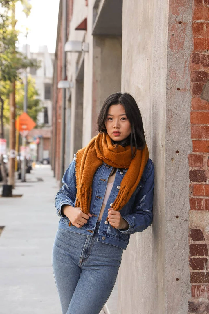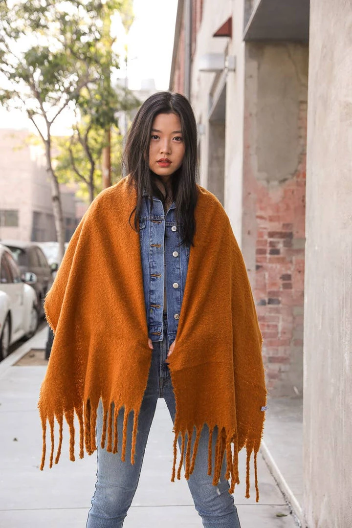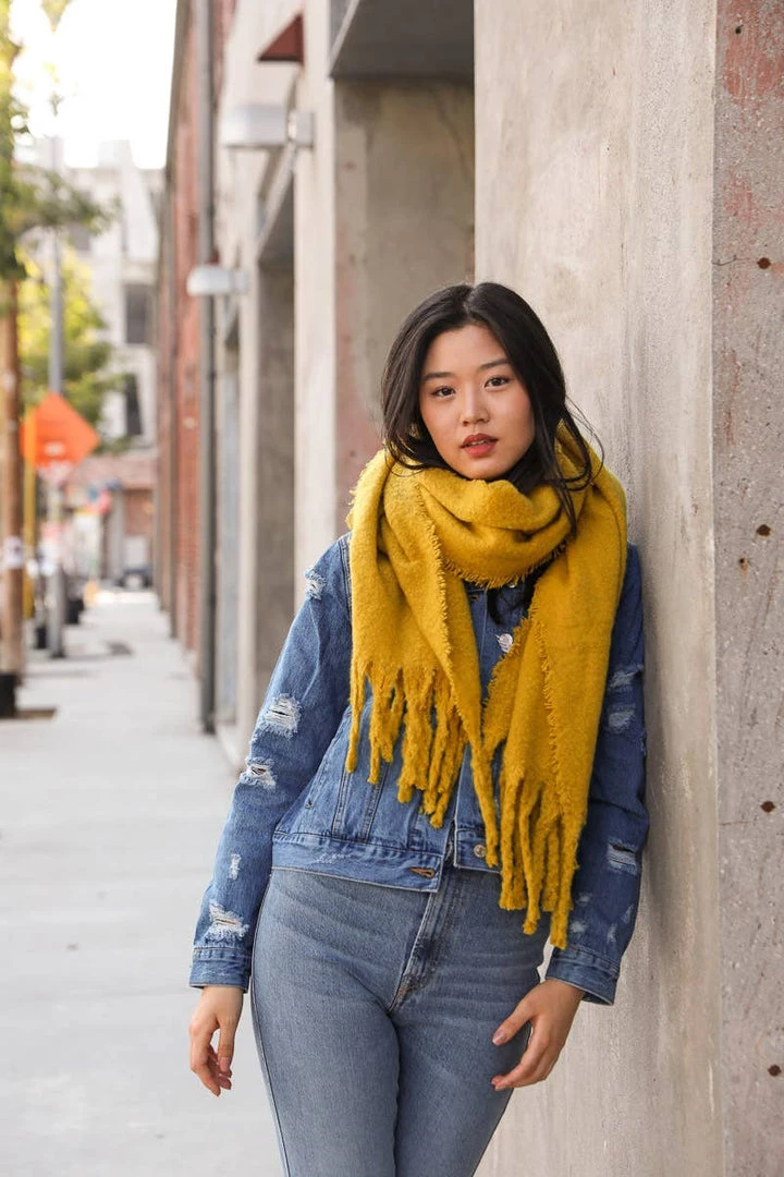 Cozy Mohair Solid Tassel Trim Blanket Scarf