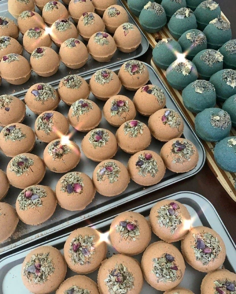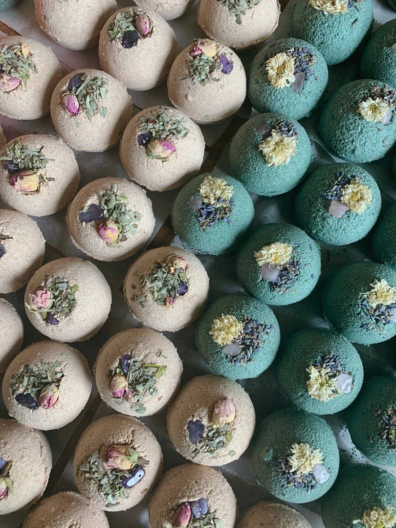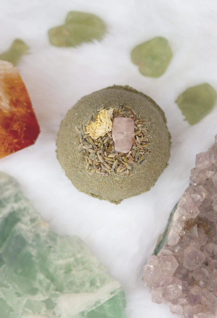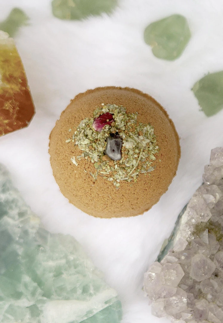 When you have had a long day and need a relaxing bath, pop one of Lit Ritual’s sage and amethyst bath bombs in your water. Enjoy the fragrance of orange, patchouli, and geranium as you soak, surrounded by organic sage leaves & a rosebud. Our ingredients include aluminum-free baking soda, epsom salt, moroccan & rhassoul clays to help detoxify the skin, almond oil to moisturize along an amethyst crystal to help ease inflammation and improve circulation. The stone has a drilled hole so you can utilize the stone as a talisman for yourself or your altar. Each bomb is good for one bath.Â