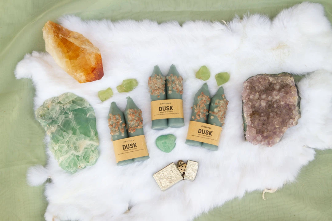 Lit Rituals altar candles are made with 100% beeswax and natural dyes. Because of this, they do best out of direct sunlight, to ensure their beautiful color doesnât fade. They come in bundles of 2. These gorgeous blue candles are dyed with Indigo, and due to the nature of the tiny blue flowers, no two batches are ever the same shade. Topped with Himalayan salt, you can burn these unscented candles when you need a dose of purifying energy in your home.Â