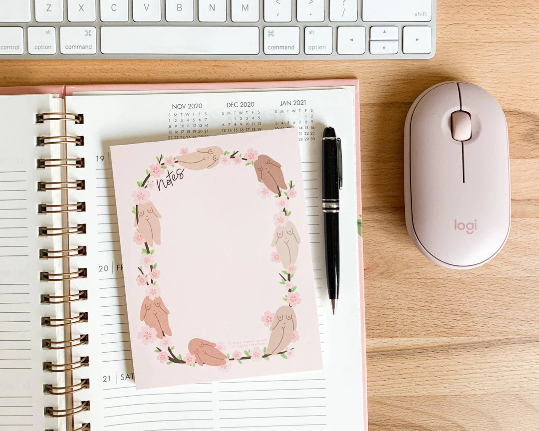 4.25″ x 5.5″ notepad 50 full-color pages 70lb paper- uncoated for excellent writability Sustainably sourced paper Padded with cardboard back Original artwork