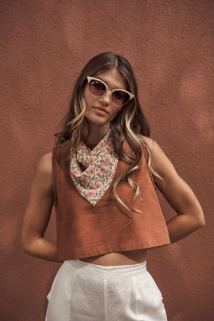 Blush color dyed cotton crop top, perfect pairing with Maelu’s lounge pants, jeans or shorts!