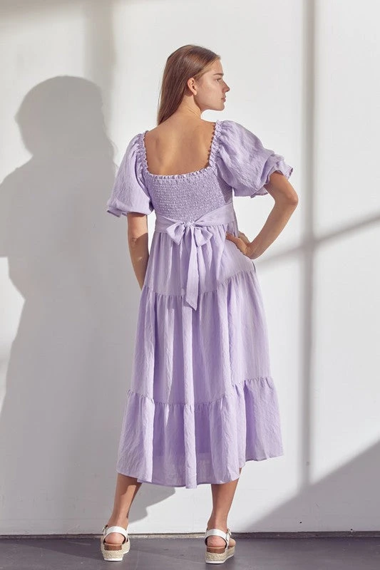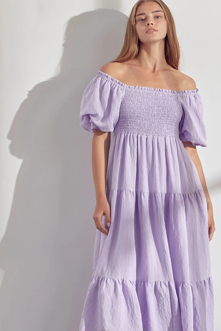 - Lavender color puff sleeve smock dress