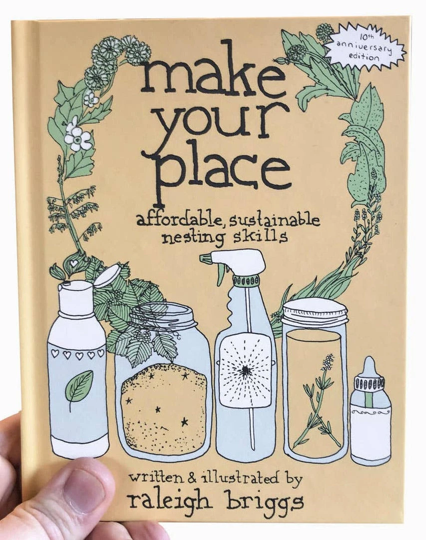 Hardcover book. 10th Anniversary Edition with a new introduction! Now in hardcover. Raleigh Briggs teaches us how to craft a sustainable domestic life without relying on smelly, toxic, expensive consumer products. And it’s not as hard as we may think! This handwritten and drawn book of charming tutorials is both fun and accessible. It’s full of simple skills that anyone can and should learn.