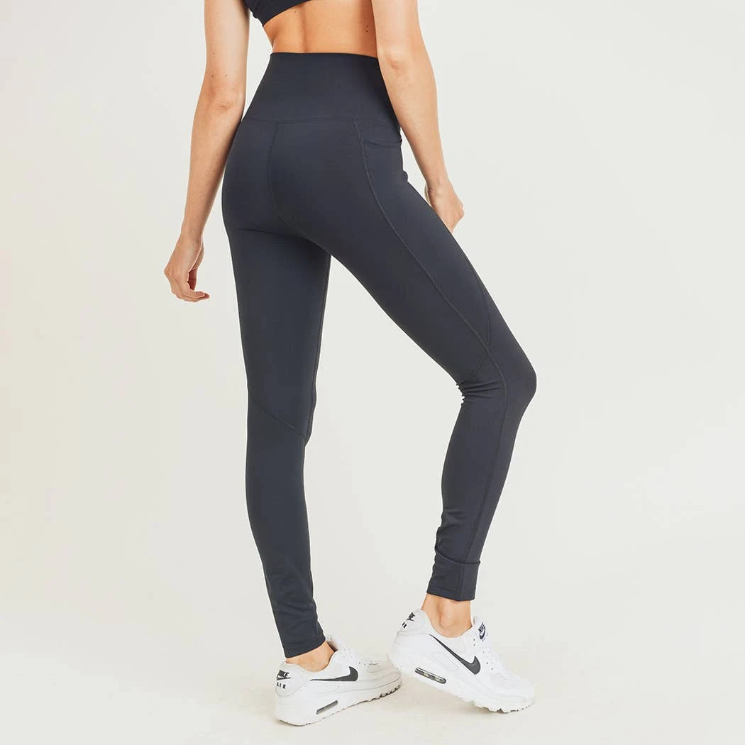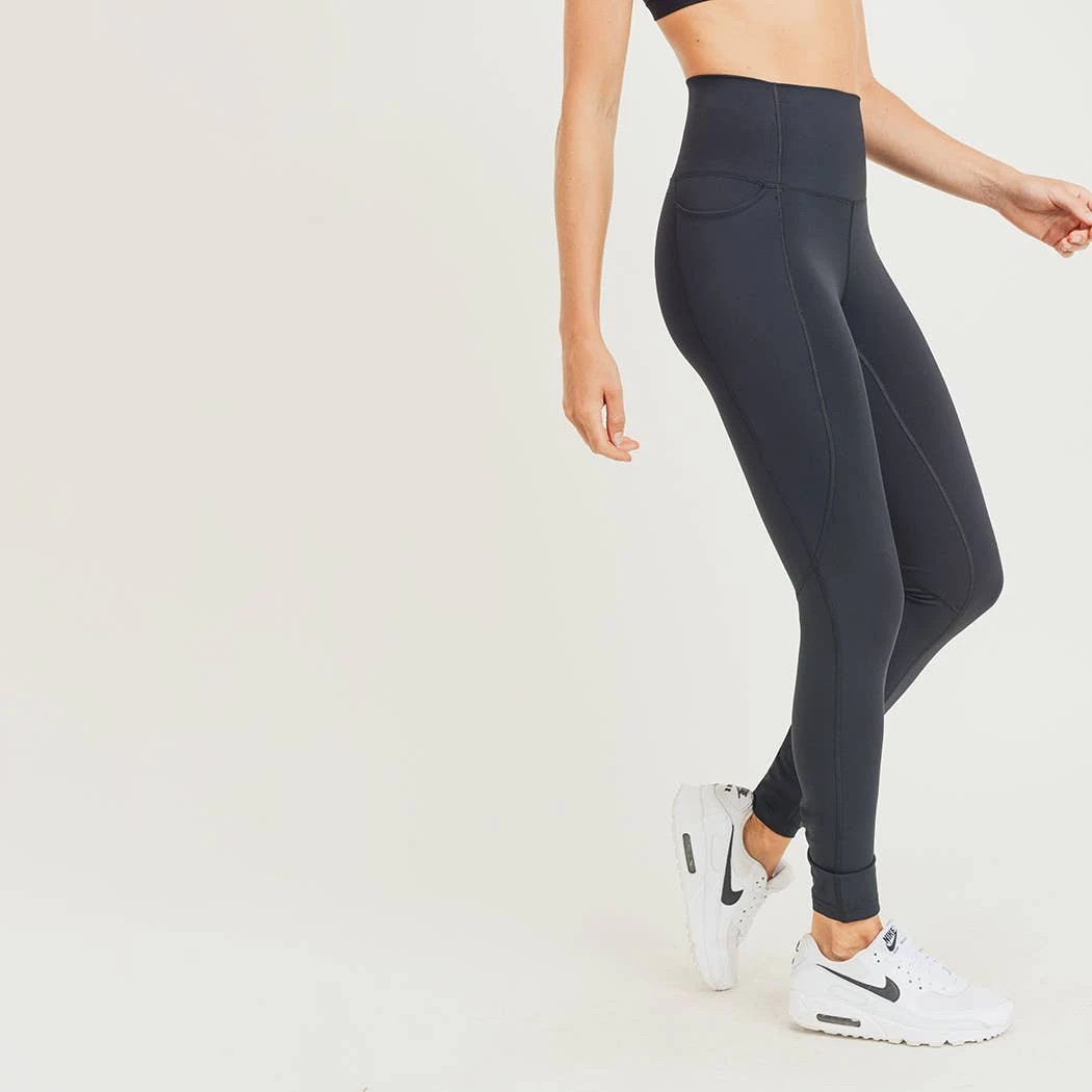 These solid-colored leggings feature a tapered, high shaping waistband for abs support and waist compression. No elastic band on top for a more comfortable fit. The side pockets are deep enough for your gadgets and other essentials.