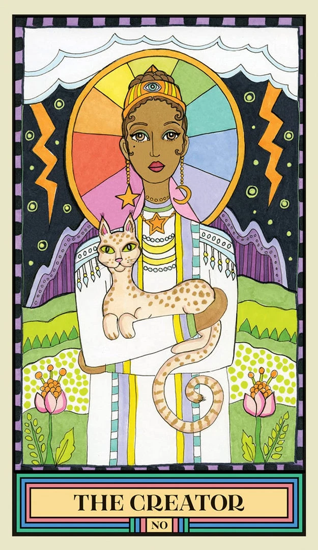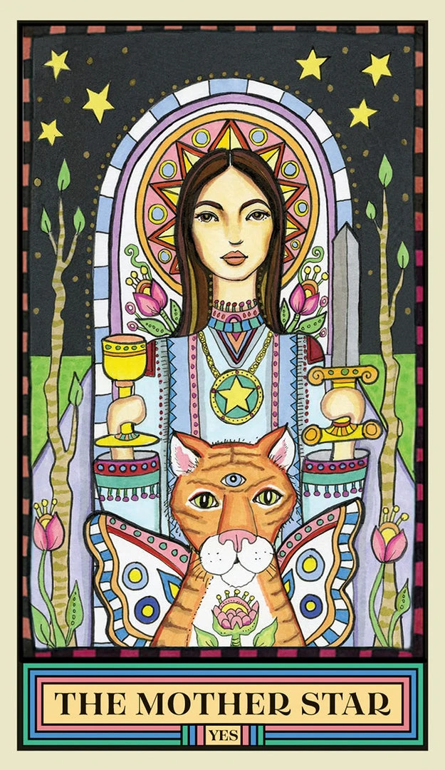 Journey into this whimsical world of self-discovery and archetypes and meet two original cards that infuse the major arcana with powerful energy: “The Mother Star” and “The Creator.”