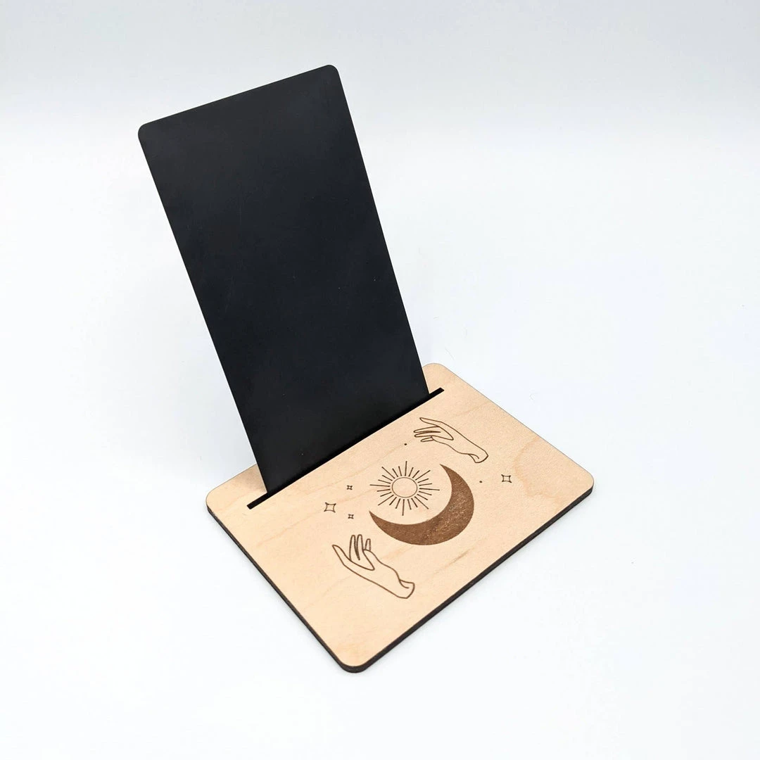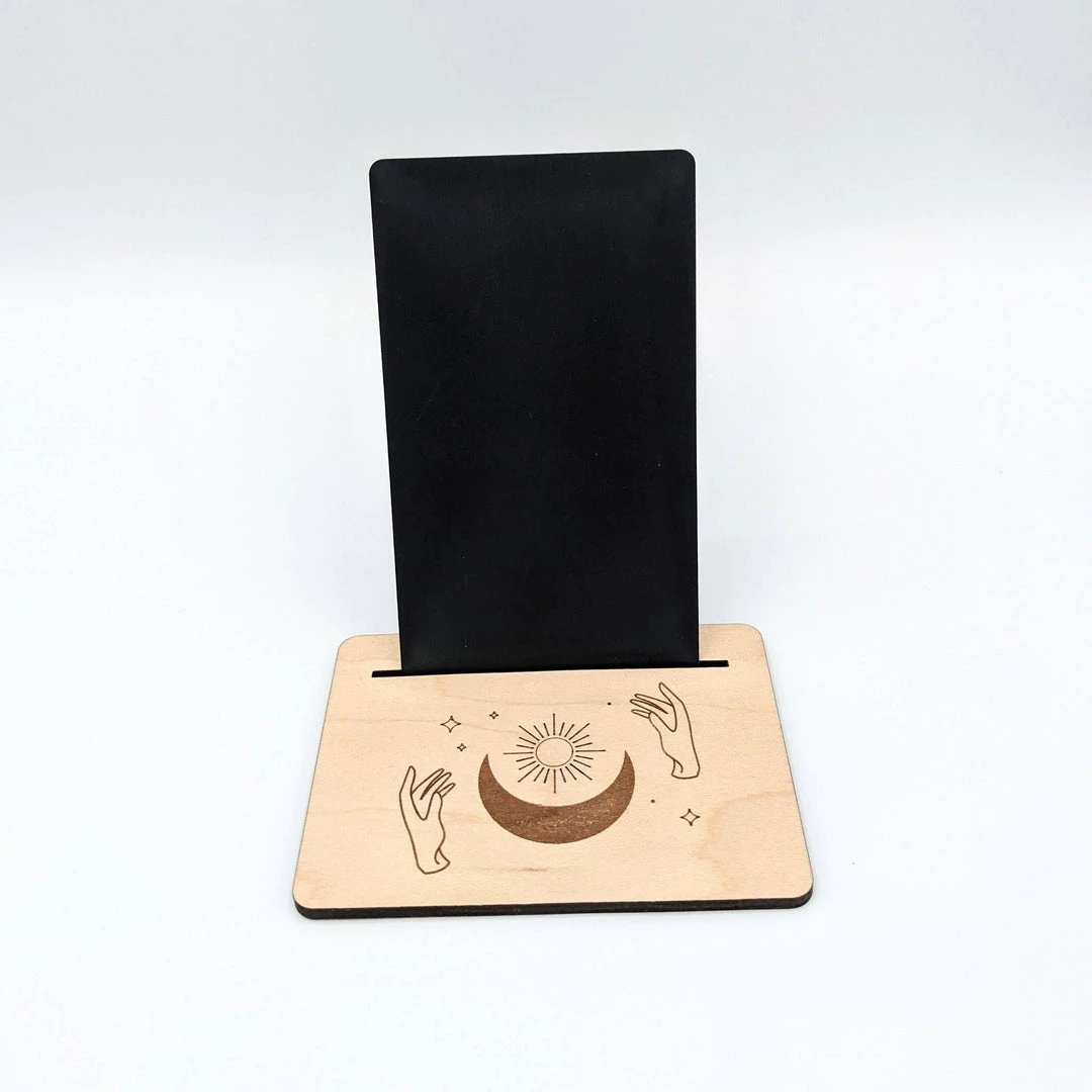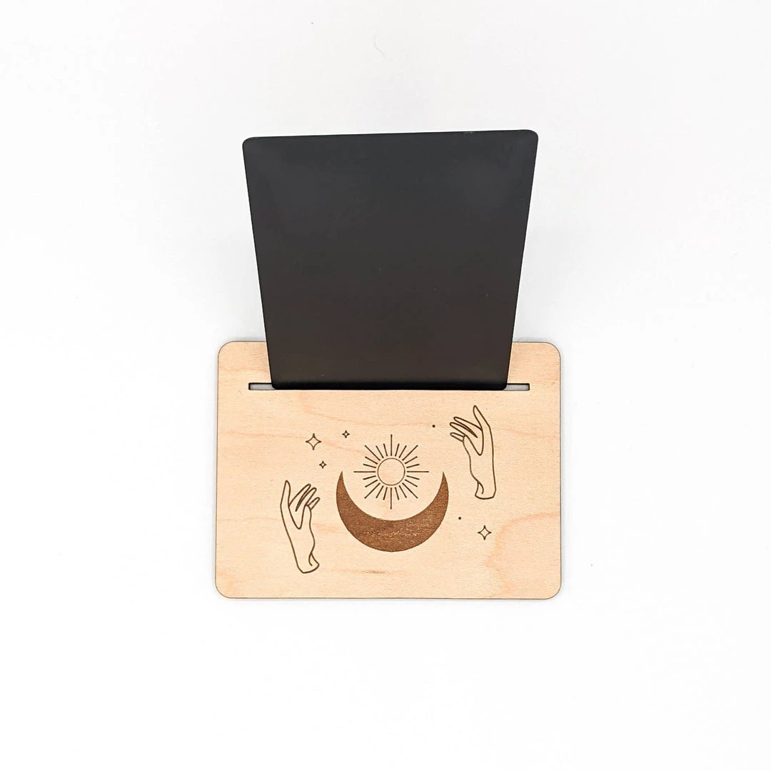 This card stand features a magical illustration and holds a standard size tarot card. It makes a great addition to your altar, desk, or bedside table and is perfect for displaying your card of the day or a significator card for meditating on. You can also use it with your favorite oracle deck!