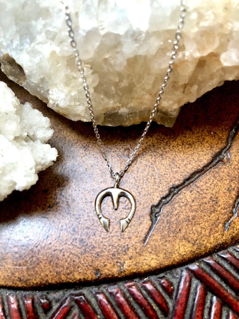 This small sterling silver cast naja pendant measures just over 3/4″ long including bail by 5/8″ wide. Â Sterling silver necklace is 16″ long.