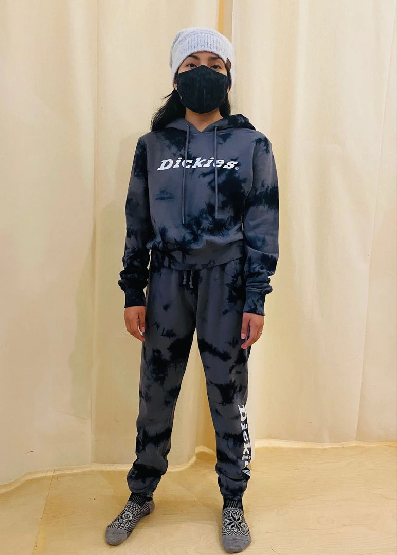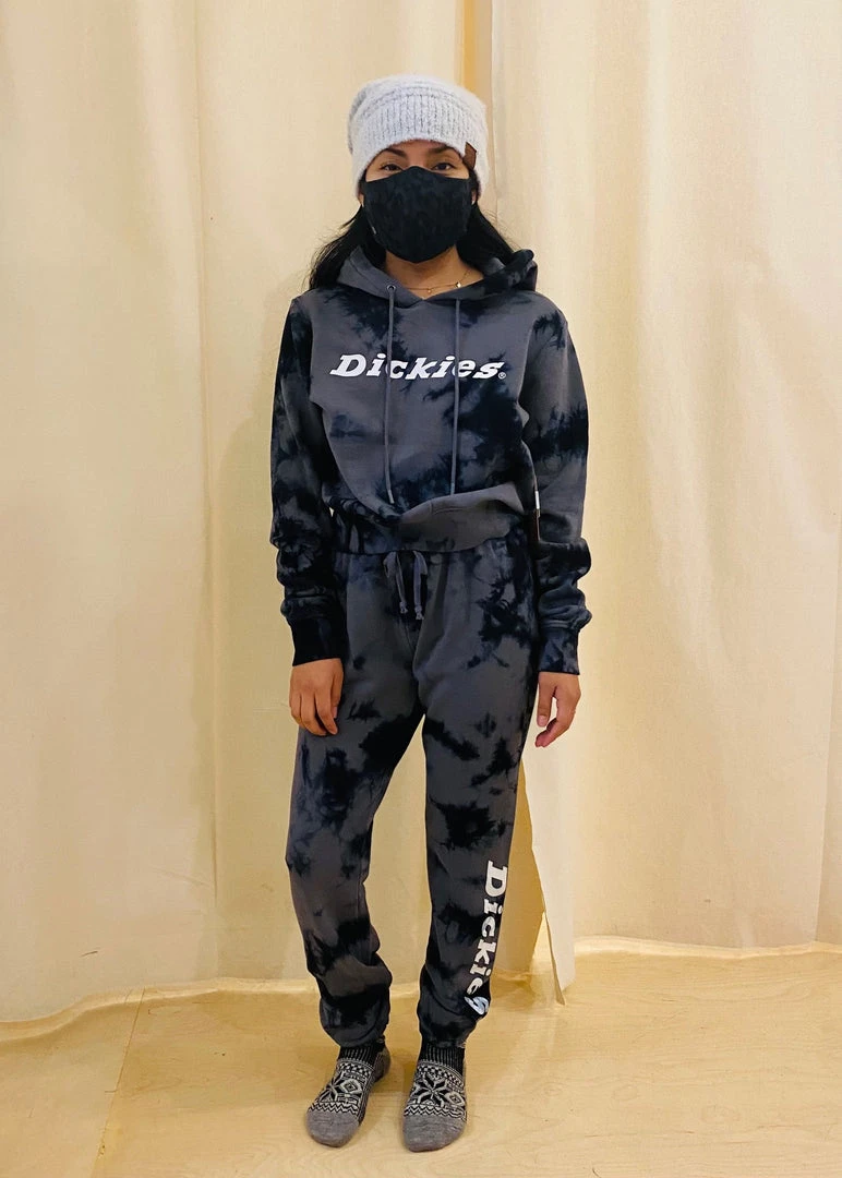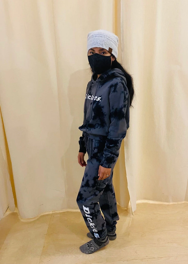 Model is 5′ wearing Small Hoodie and XS Joggers